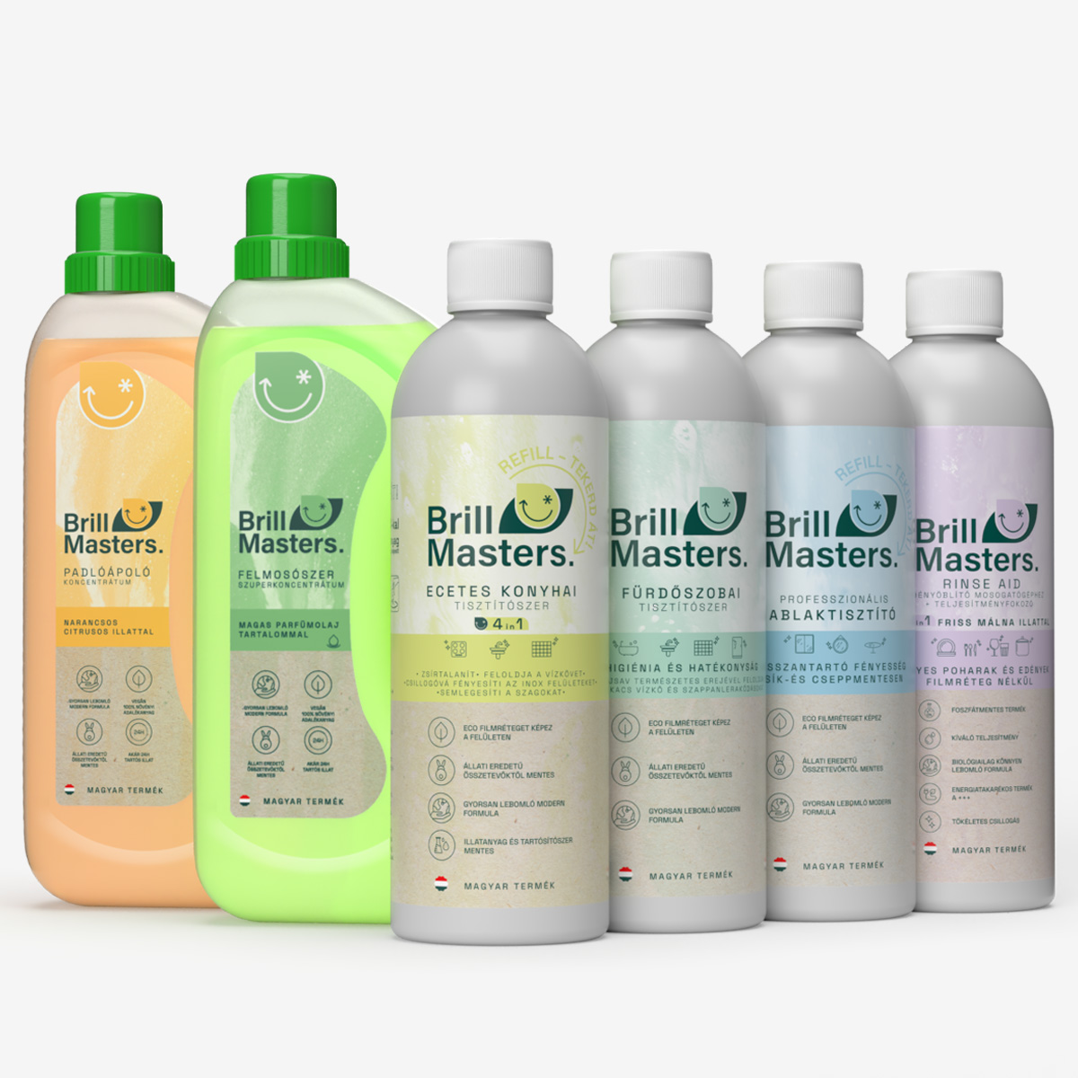 BrillMasters® Felmosószer szuperkoncentrátum: nagy teljesítményű, 100% növényi, vegán adalékanyagokat tartalmaz; új generációs, gyorsan lebomló modern formula; egy flakonban akár dupla felmosáshoz elegendő oldat; állati eredetű összetevőktől mentes; akár 24h tartós illat; hosszantartó fényességet és friss illatot hagy maga után; képes csíkmentesen száradni; magyar termék