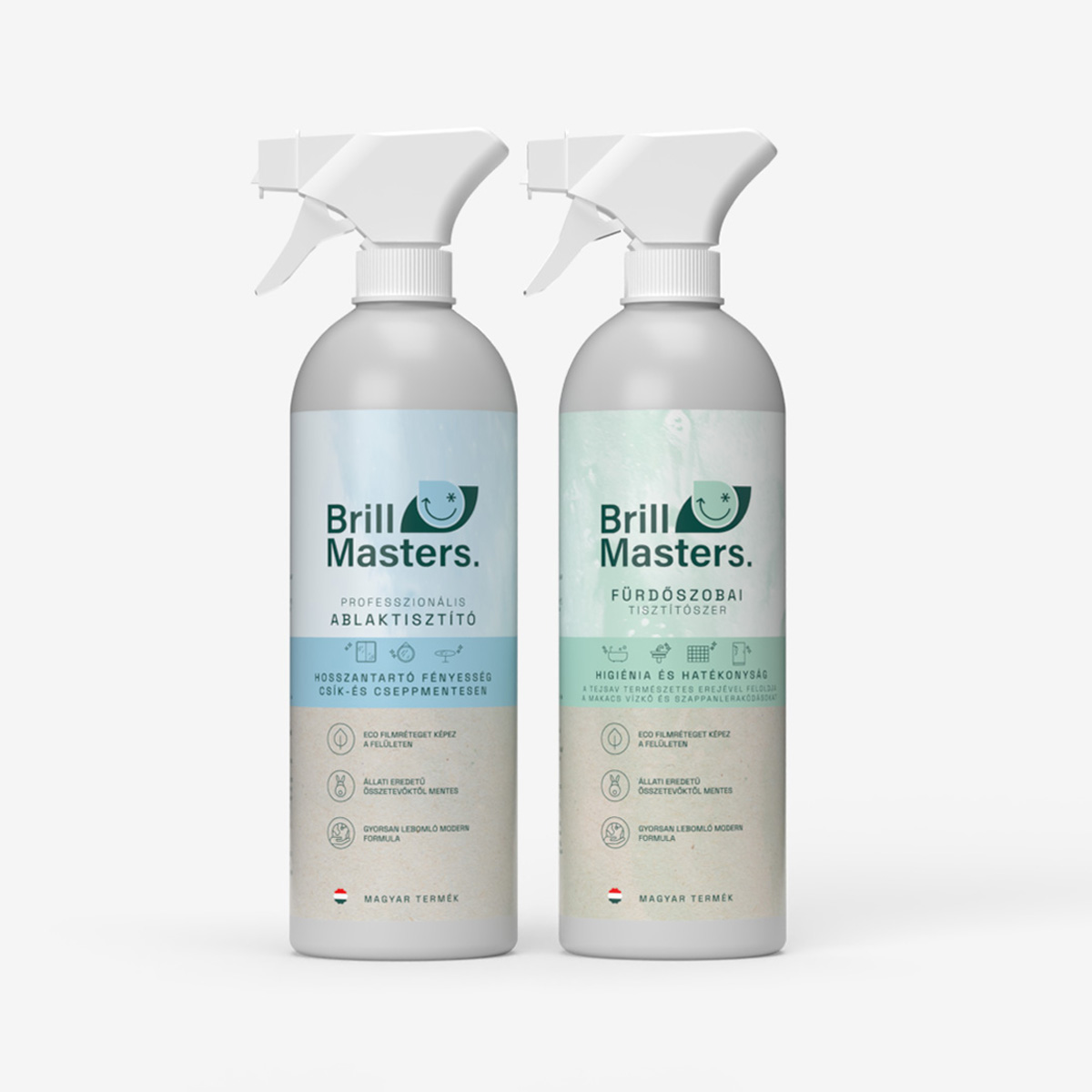 1db 750 ml-es BrillMasters® Professzionális ablaktisztító, amely képes csík-, és cseppmentesen száradni, hogy a tisztaság csillogása megunhatatlan maradjon.