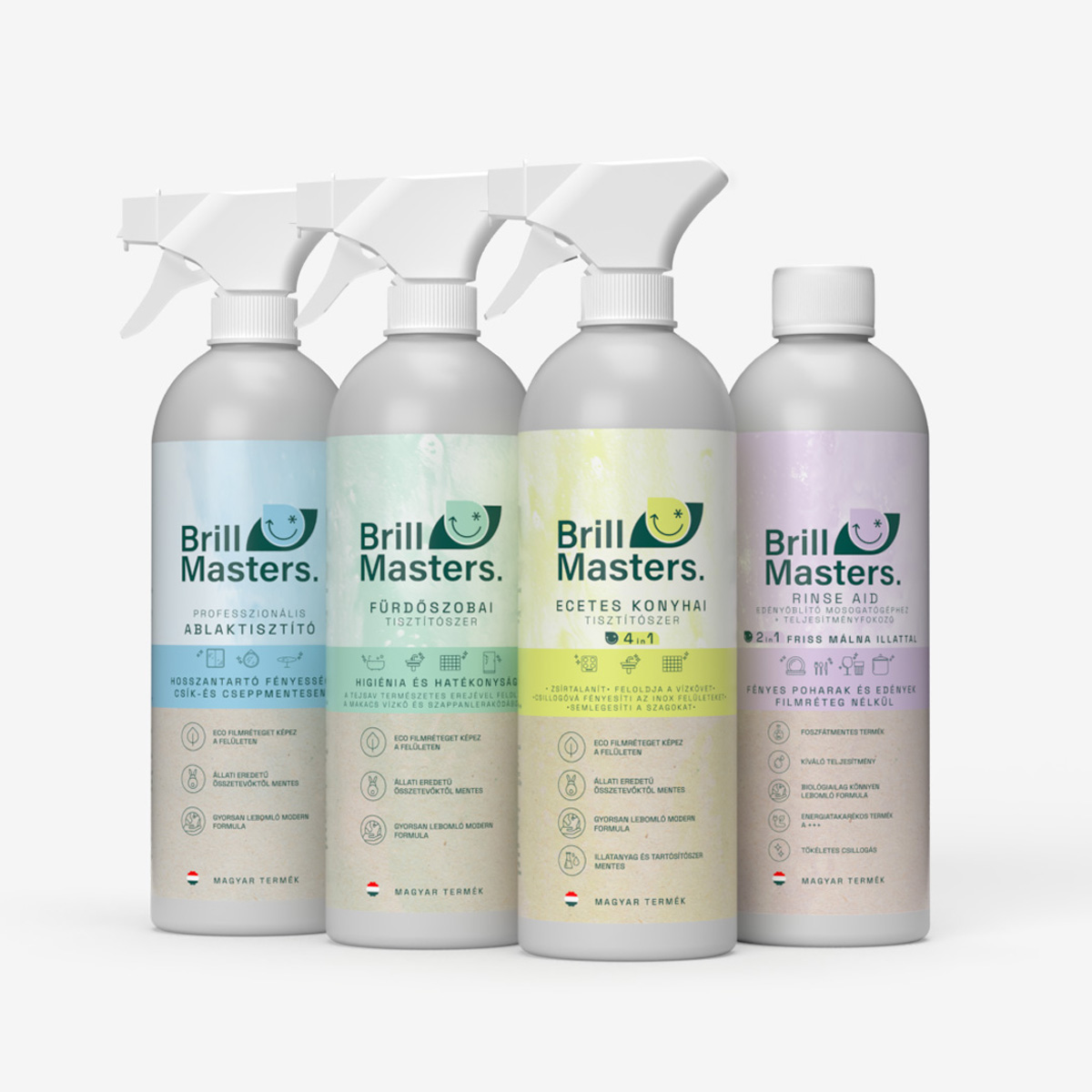 1db 750 ml-es BrillMasters® Professzionális ablaktisztító, amely képes csík-, és cseppmentesen száradni, hogy a tisztaság csillogása megunhatatlan maradjon.